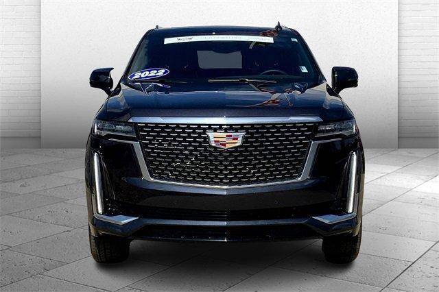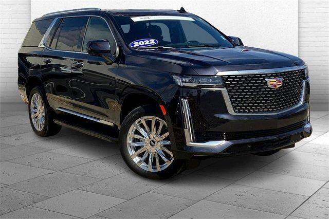 With the available Cadillac Certification, you can have an umbrella of protection over this Escalade for increased peace of mind. 2022 Cadillac Escalade Premium Luxury 4WD 4WD, Black Leather, Adaptive Cruise Control, AKG Studio 19-Speaker Audio System, Apple CarPlay/Android Auto, Automatic Seat Belt Tightening, Automatic temperature control, Brake assist, Door Lock & Latch Shields, Enhanced Automatic Emergency Braking, Enhanced Automatic Parking Assist, Fully automatic headlights, Glass Breakage Sensor, Heads-Up Display, Heated & Ventilated Driver & Front Passenger Seats, Heated rear seats, Lane Change Alert w/Side Blind Zone Alert, Mechanical Limited-Slip Differential, Memory seat, Navigation System, Power driver seat, Power Liftgate, Power Panoramic Tilt-Sliding Sunroof, Preferred Equipment Group 1SB, Premium Smooth Ride Suspension, Rear Camera Mirror, Rear Camera Mirror Washer, Rear Cross Traffic Alert, Reconfigurable Full-Color Head-Up Display, Reverse Automatic Braking, Running Board Assist Steps, Start/Stop System Disable Button, Theft-Deterrent Alarm System, Vehicle Inclination Sensor, Vehicle Interior Movement Sensor, Wheels: 22 14-Spoke Alloy w/Polished Finish. Come experience the Cable Dahmer difference and join the family of completely satisfied customers that have purchased vehicles from us. Call 816-541-5400 to schedule your test drive appointment and one of our factory trained Cadillac specialists will be happy to help you. .